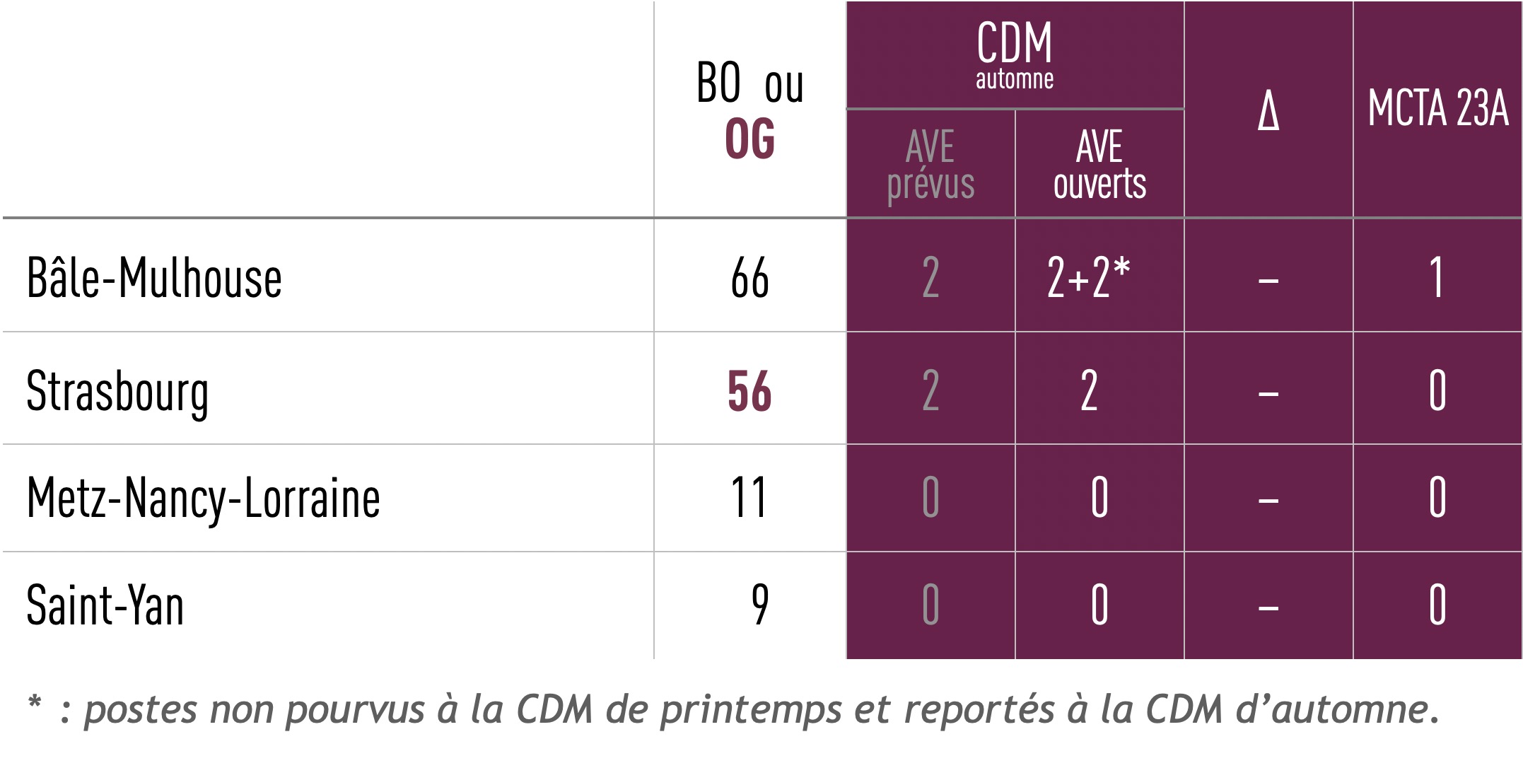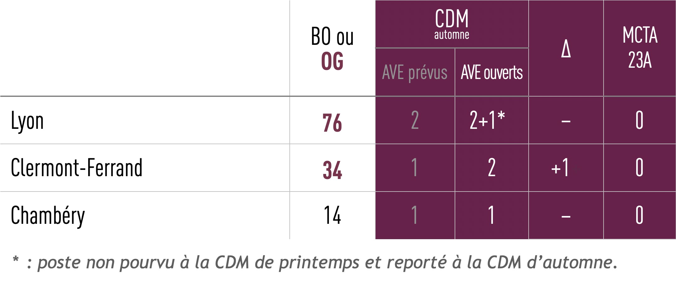 Lyon : un agent en retour de disponibilité est réintégré et affecté à Lyon en plus du report de l’AVE non pourvu à la campagne de printemps.
