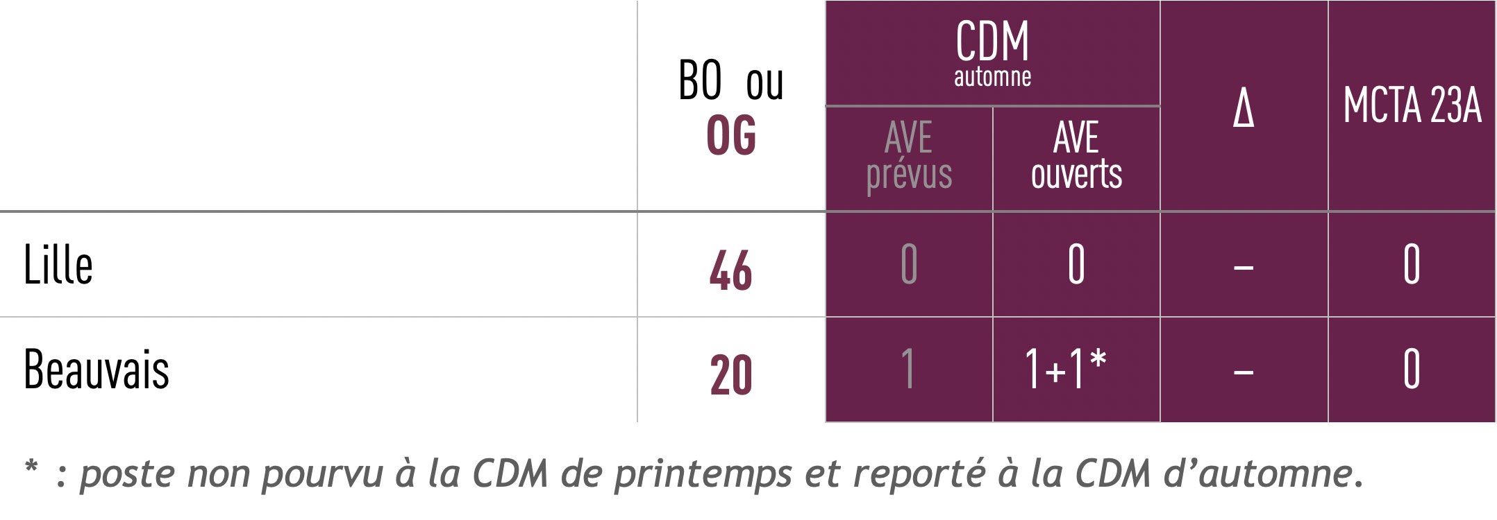 Beauvais : l’affectation de 4 arrêts de formation, d’un RUE et d’un élève MCTA 22C portent à 6 le nombre de ressources affectées en 2025, permettant ainsi d’amorcer la remontée des effectifs de ce centre en fort sous-effectif. L’effort devra se poursuivre en 2026.