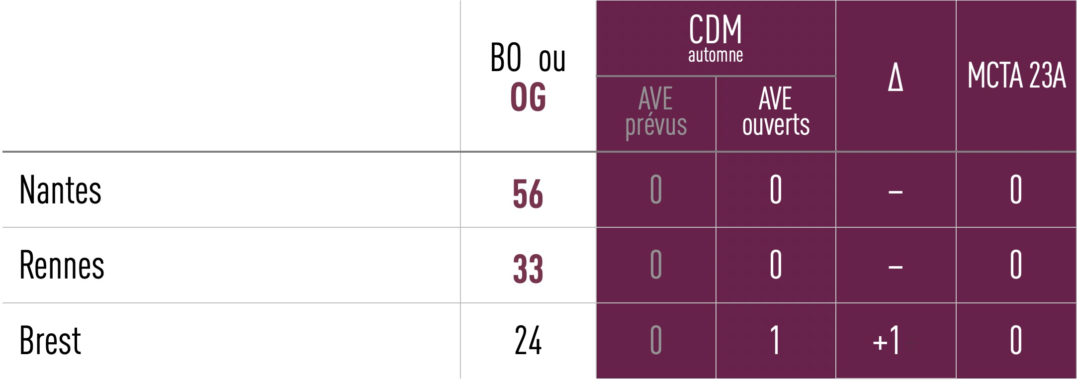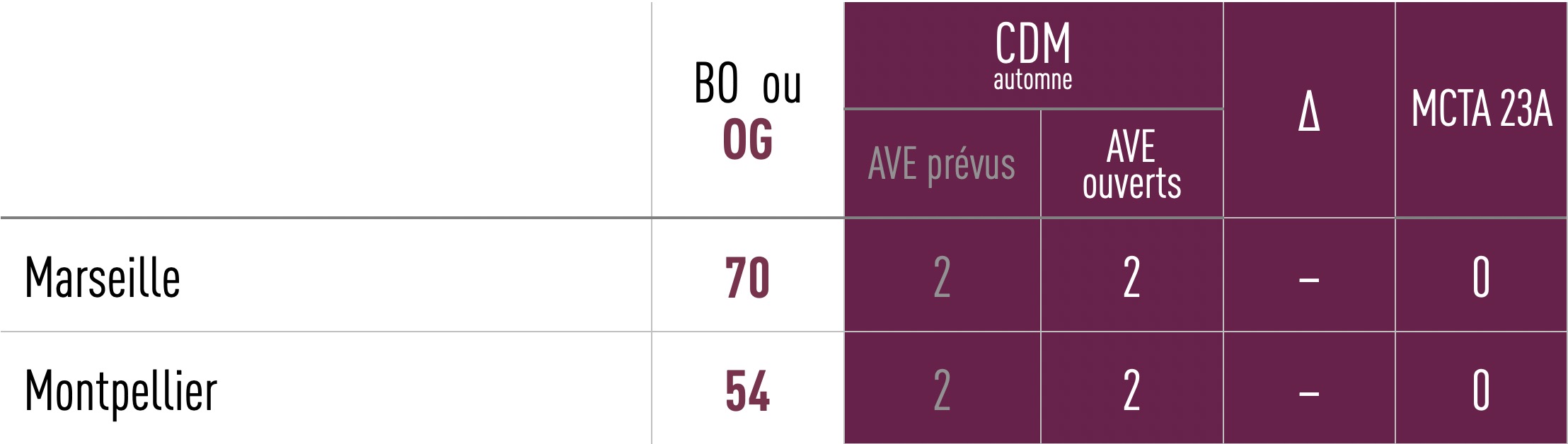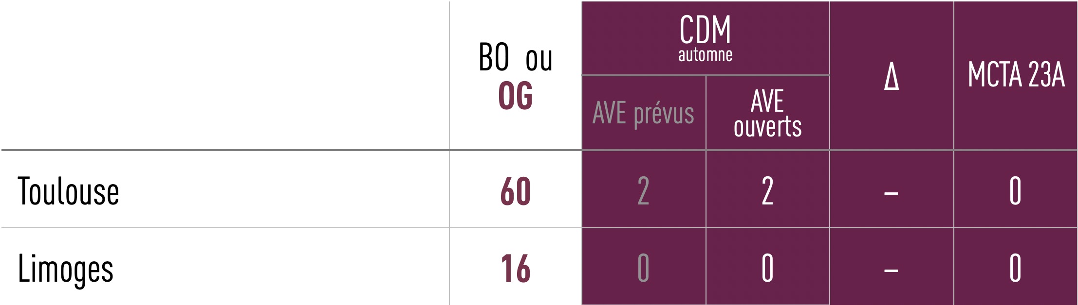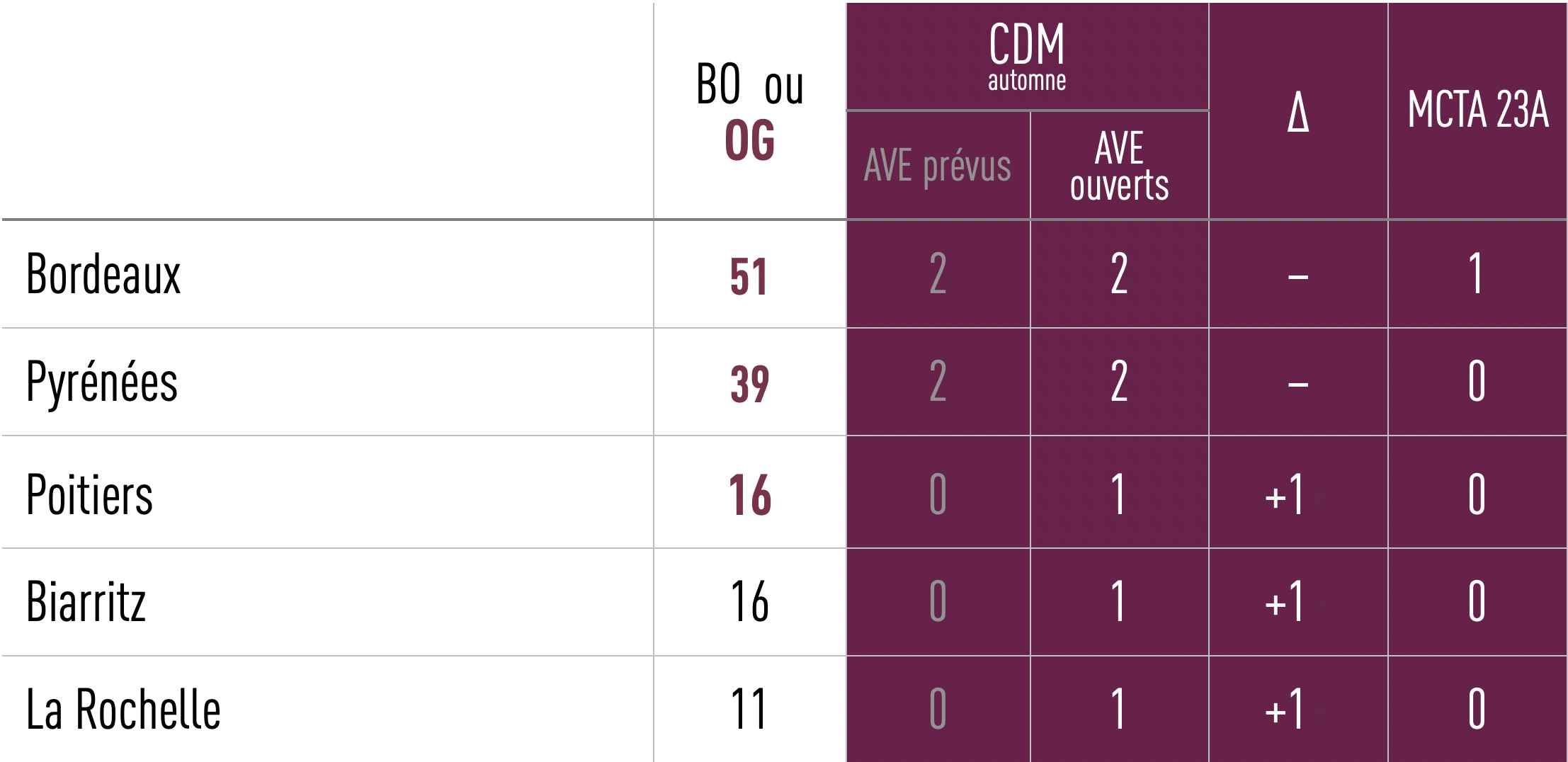 Bordeaux : une sortie MCTA 23A en moins est compensée par un AVE supplémentaire.